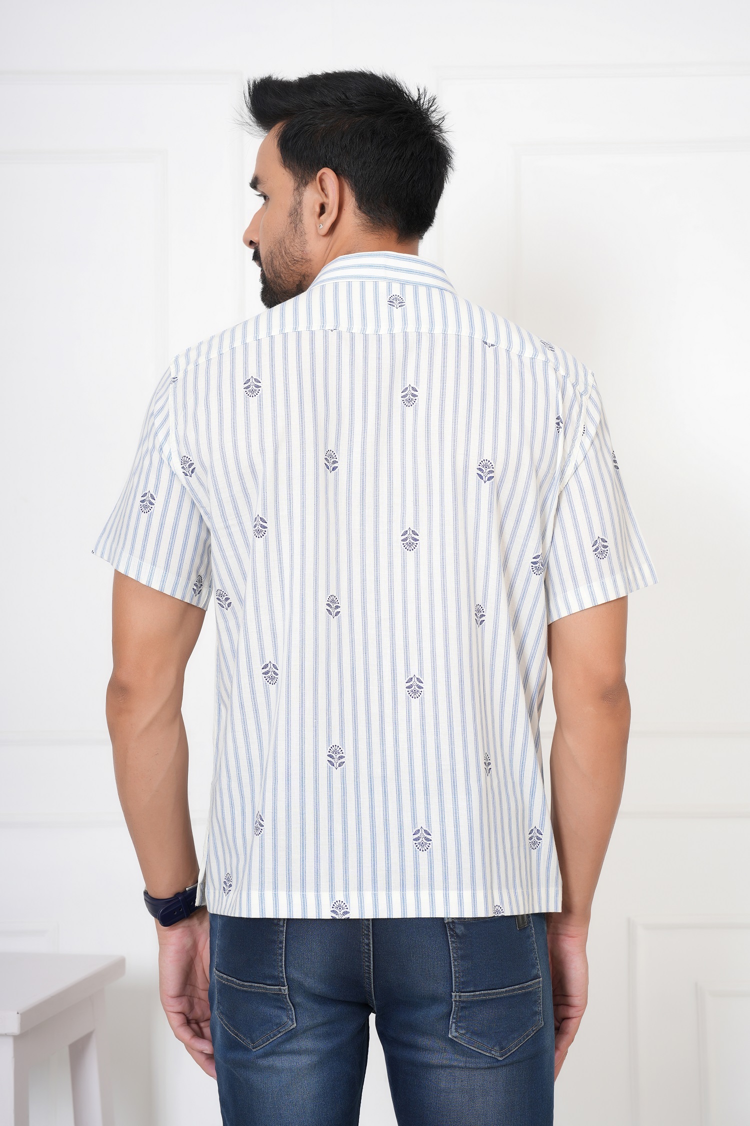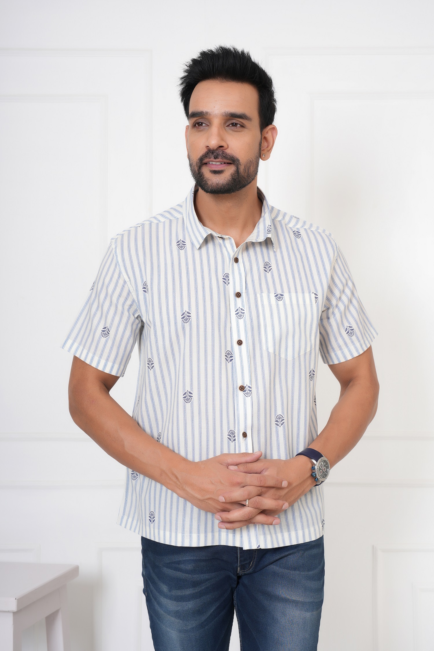 Bold. Minimal. Timeless. The Booti Print on white cotton shirt by Avigyah features striking white handblock prints on a deep white base, exuding sharp ethnic elegance. Perfect for evening get-togethers, casual Fridays, or cultural nights, this shirt is handcrafted from 100% Sanganeri cotton for unbeatable breathability and comfort.