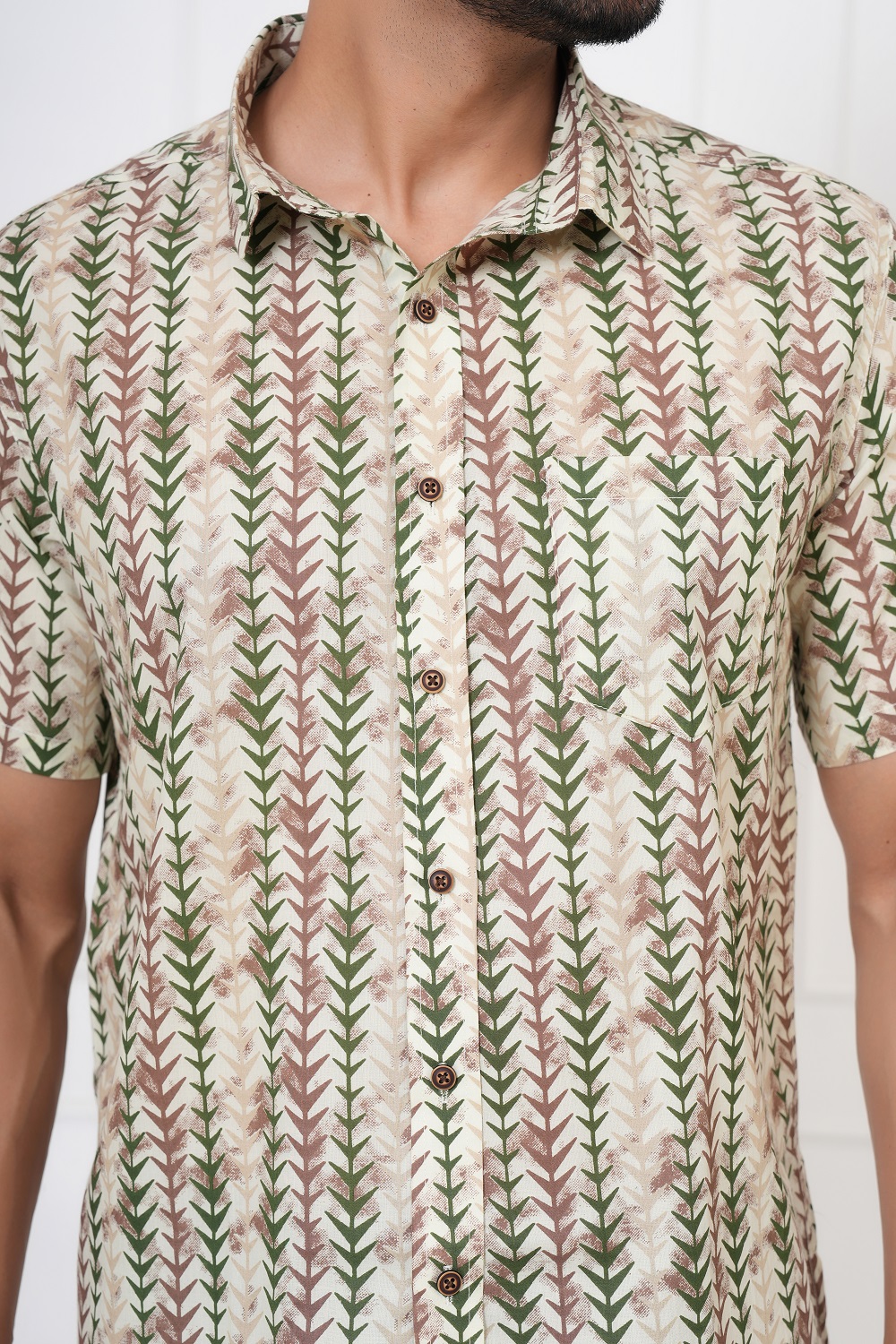 Bold. Minimal. Timeless. The Cream Colour Printed Cotton shirt by Avigyah features striking white handblock prints on a deep Cream base, exuding sharp ethnic elegance. Perfect for evening get-togethers, casual Fridays, or cultural nights, this shirt is handcrafted from 100% Sanganeri cotton for unbeatable breathability and comfort.