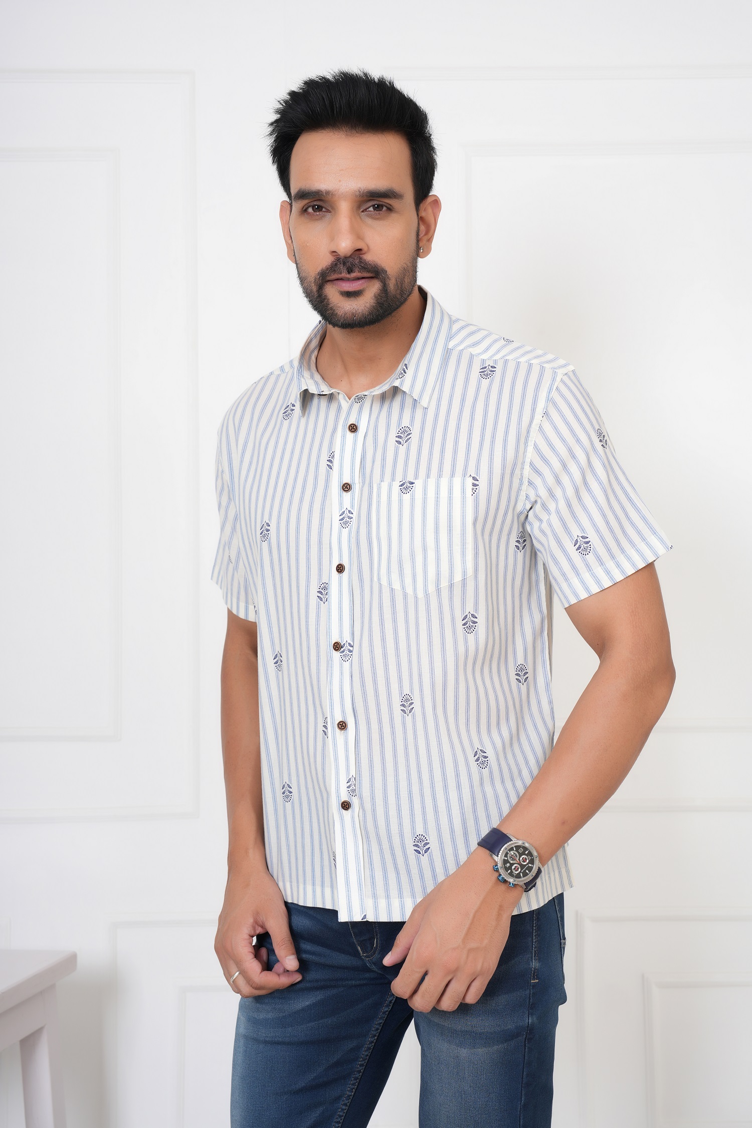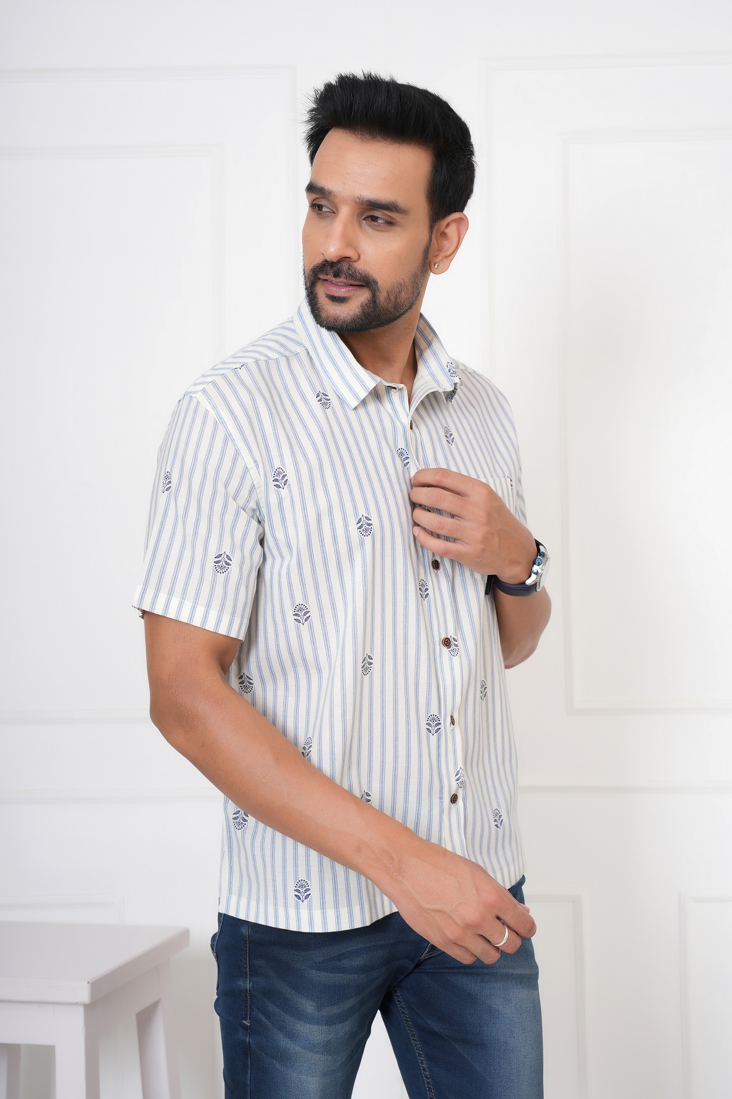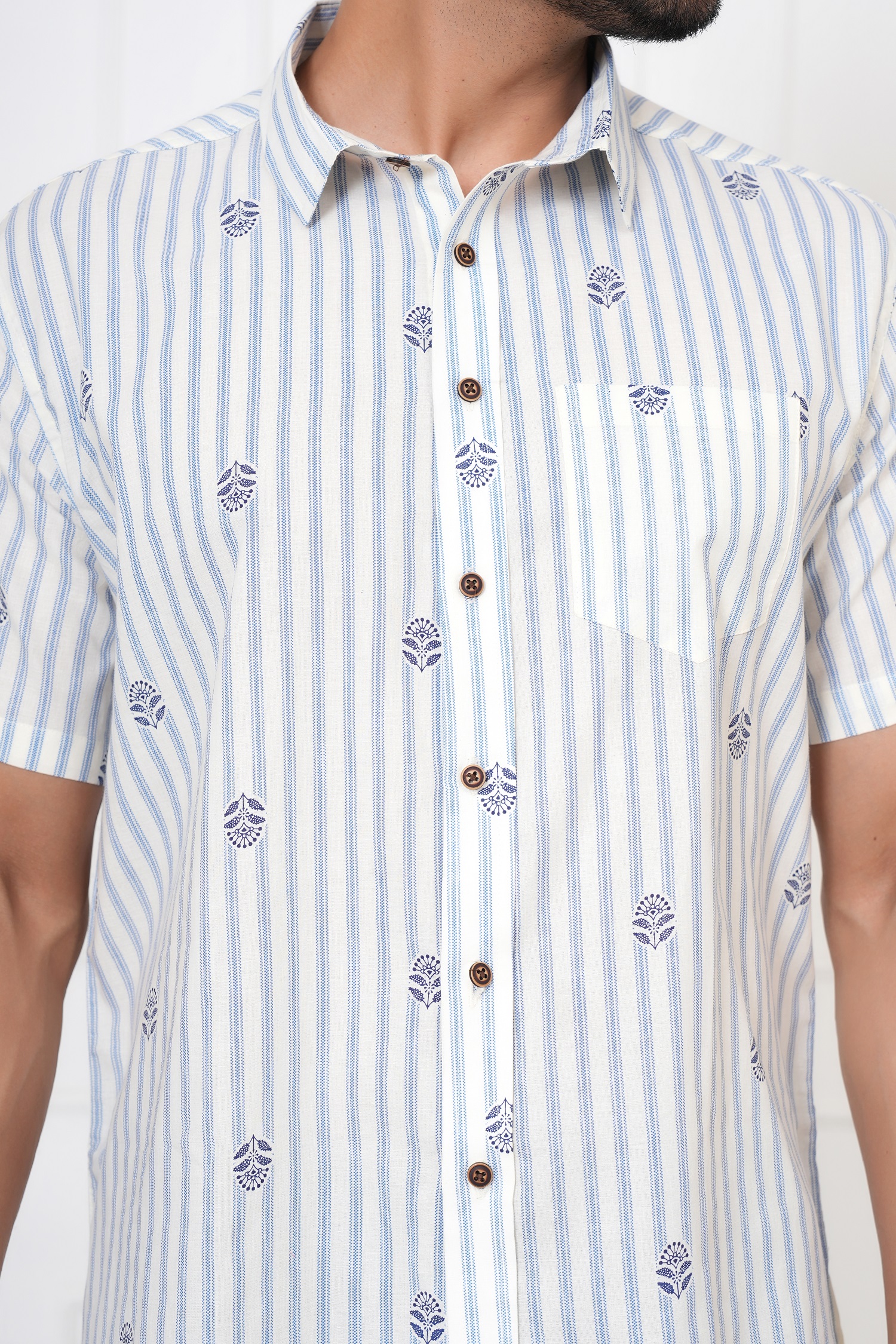 Bold. Minimal. Timeless. The Booti Print on white cotton shirt by Avigyah features striking white handblock prints on a deep white base, exuding sharp ethnic elegance. Perfect for evening get-togethers, casual Fridays, or cultural nights, this shirt is handcrafted from 100% Sanganeri cotton for unbeatable breathability and comfort.