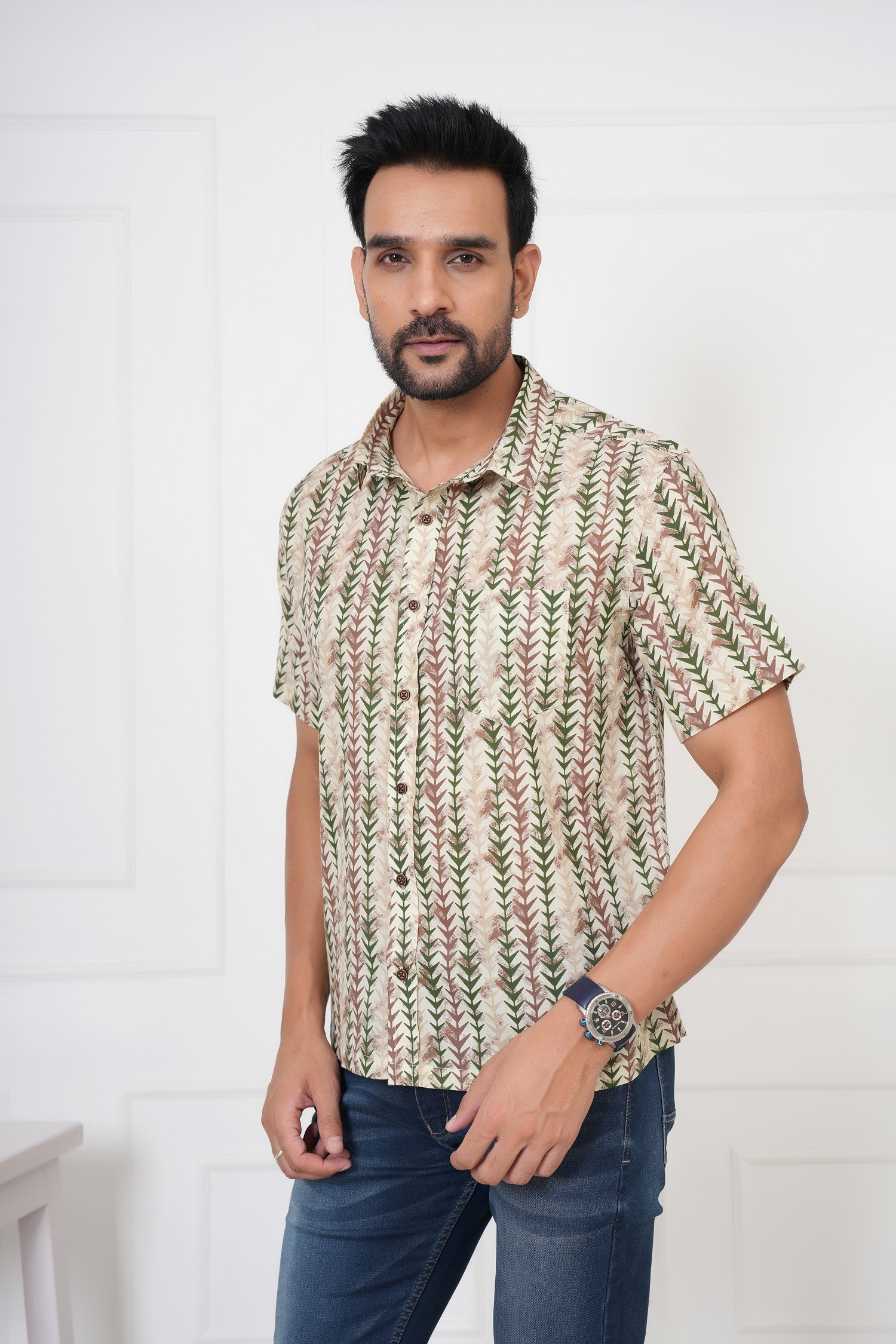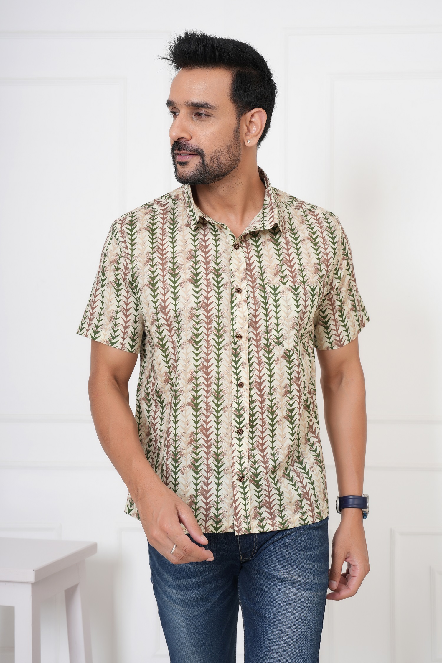 Bold. Minimal. Timeless. The Cream Colour Printed Cotton shirt by Avigyah features striking white handblock prints on a deep Cream base, exuding sharp ethnic elegance. Perfect for evening get-togethers, casual Fridays, or cultural nights, this shirt is handcrafted from 100% Sanganeri cotton for unbeatable breathability and comfort.