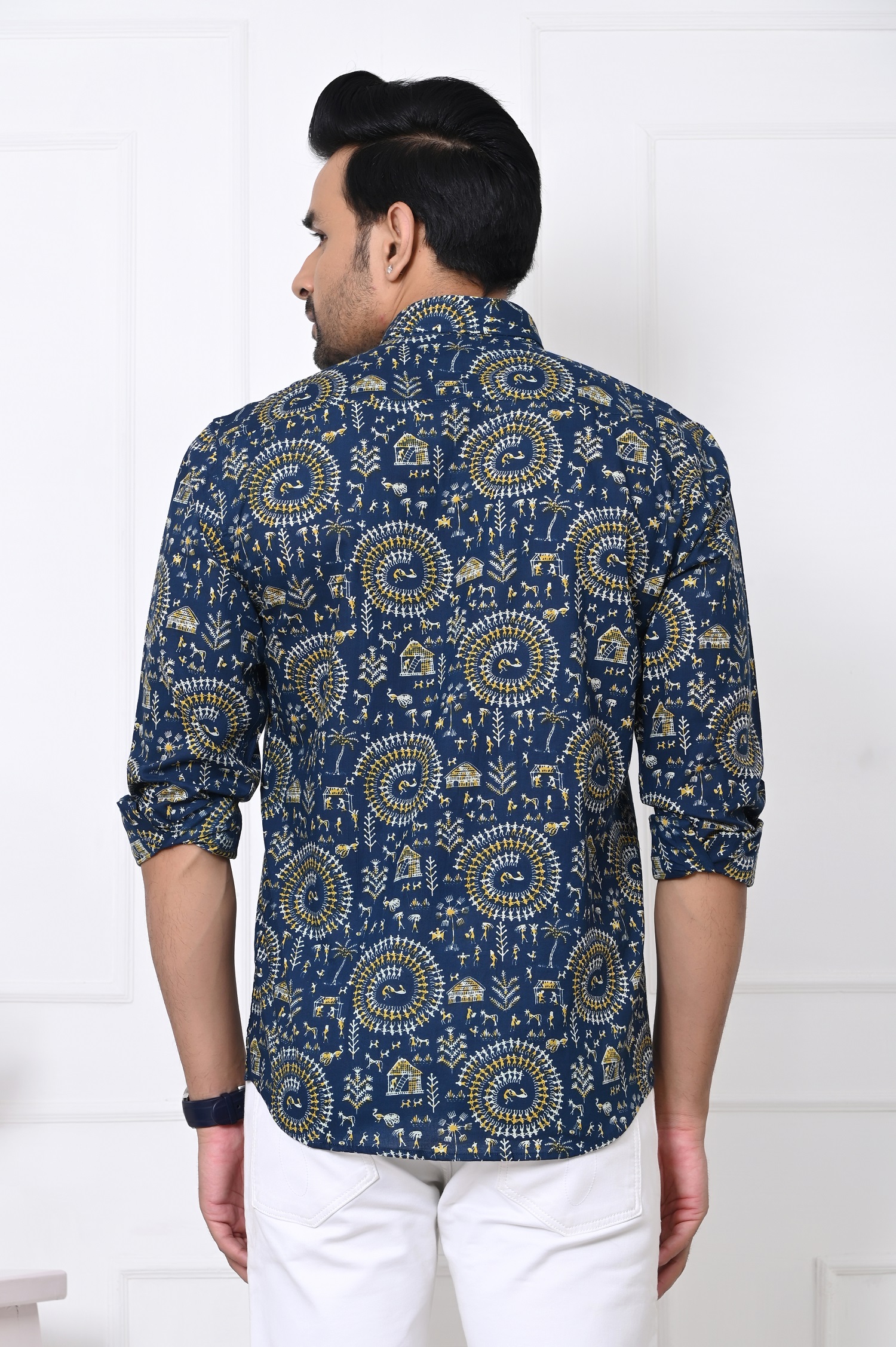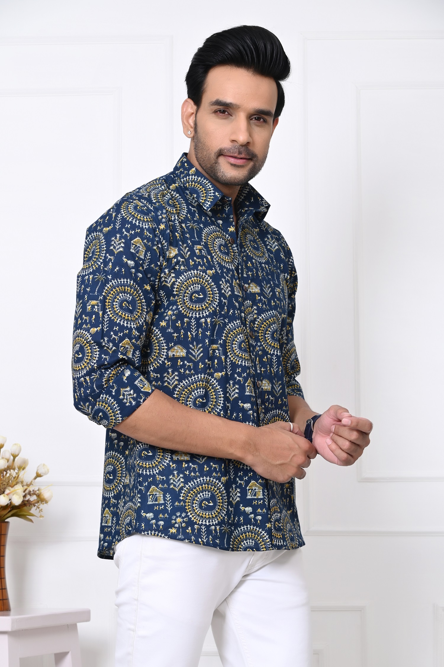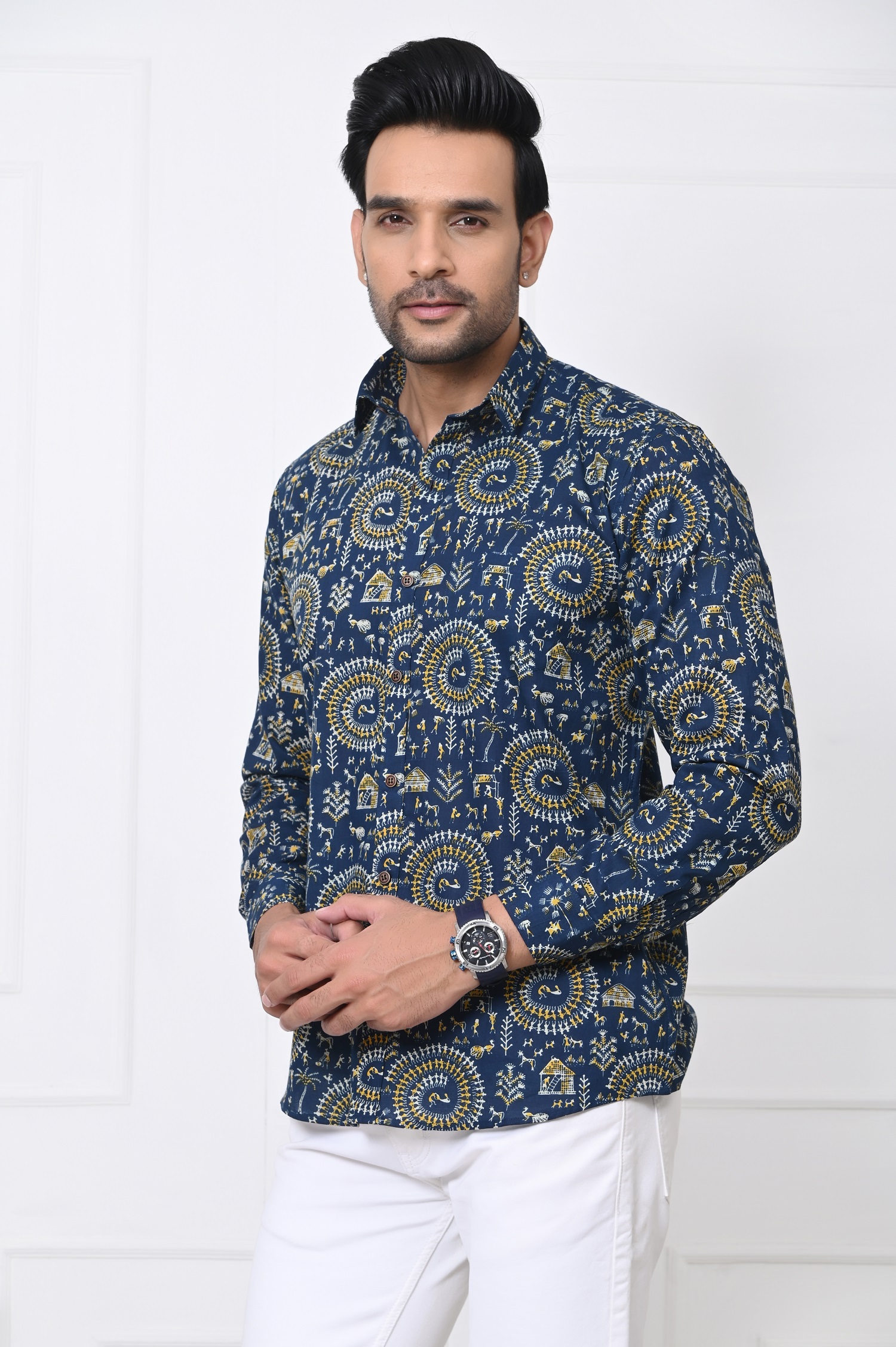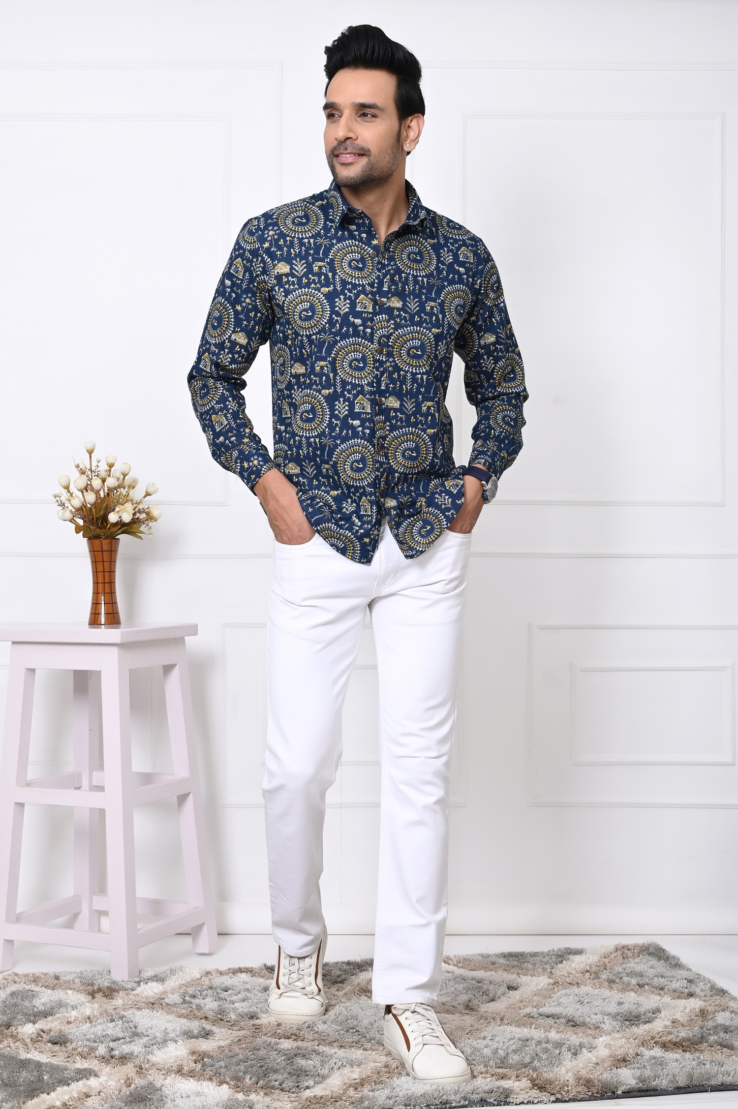 Unleash your wild side with Mandap Printed — a bold twist on Rajasthani block printing. This shirt fuses tribal energy with urban edge. Crafted in breathable Sanganeri cotton, it's your go-to for statement looks, music nights, or weekend escapes.