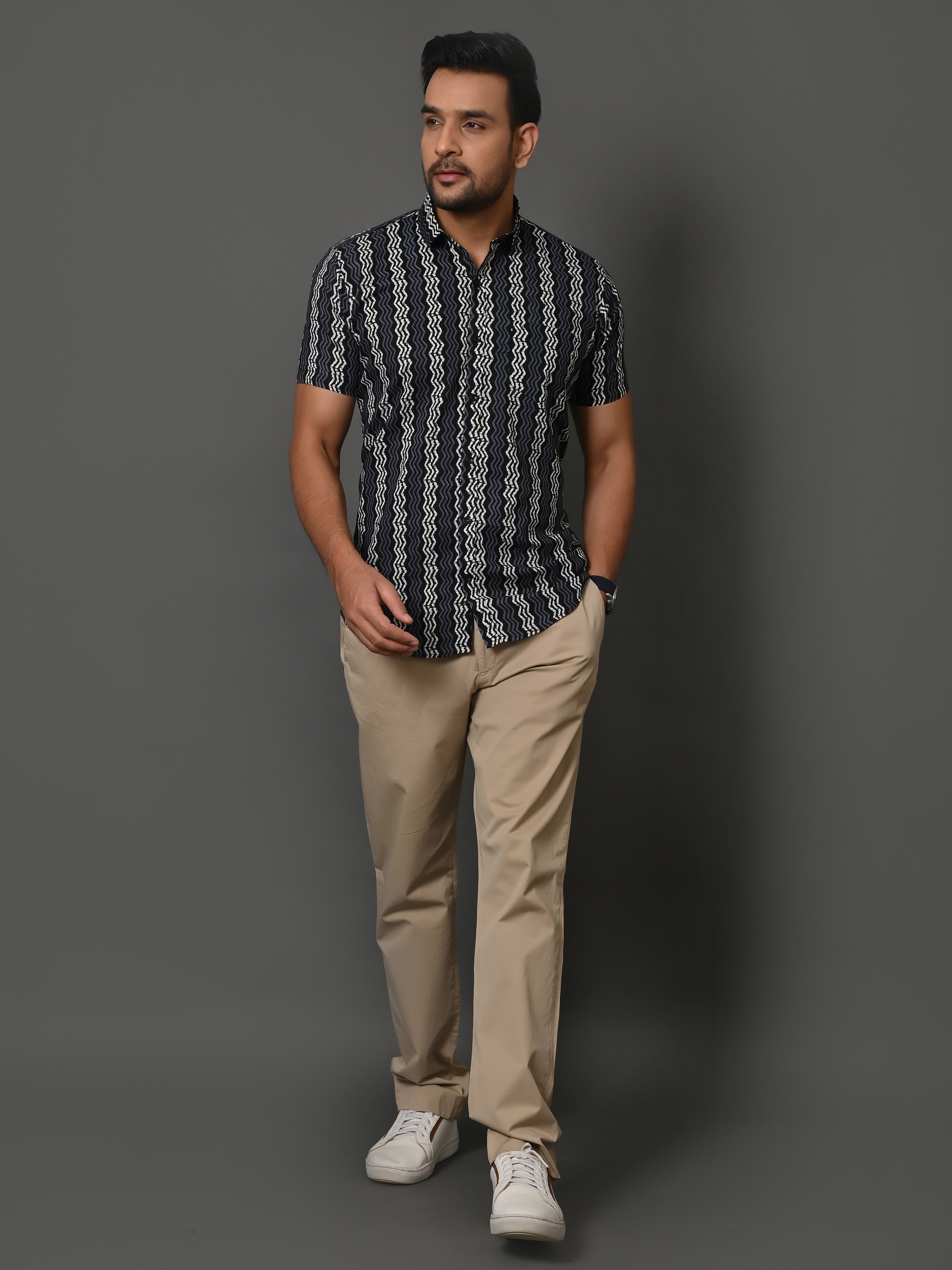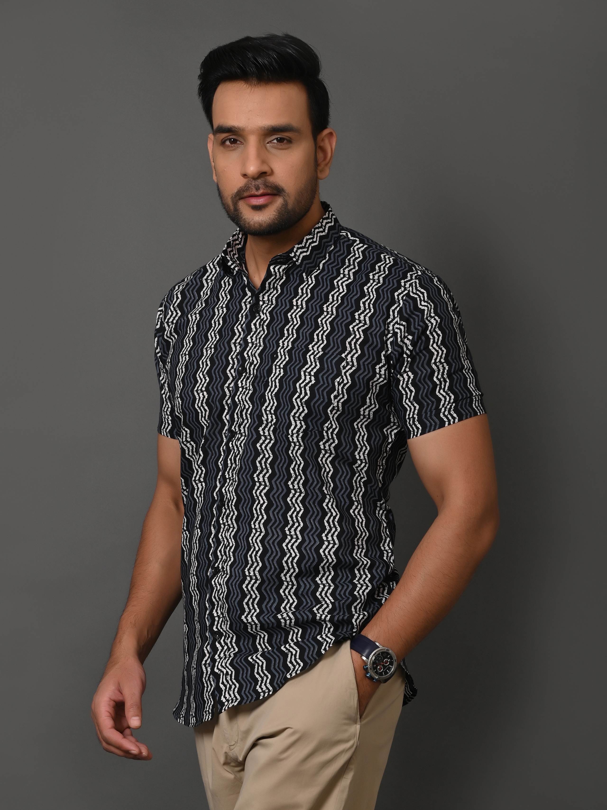 Unleash your wild side with Zig-Zag — a bold twist on Rajasthani block printing. This shirt fuses tribal energy with urban edge. Crafted in breathable Sanganeri cotton, it's your go-to for statement looks, music nights, or weekend escapes.