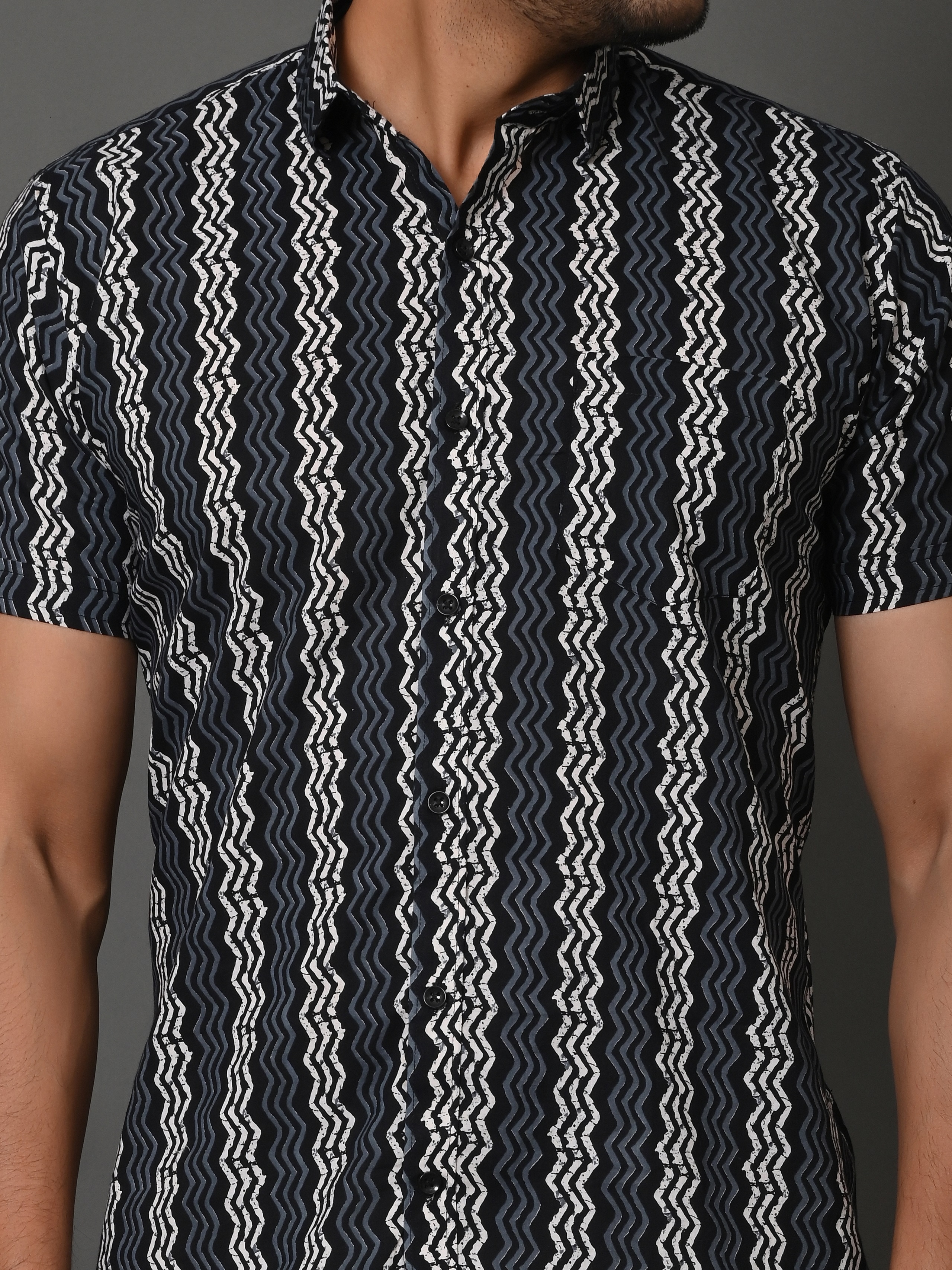 Zig Zag Black Cotton Shirt